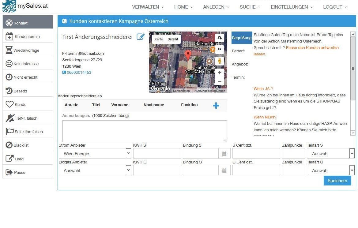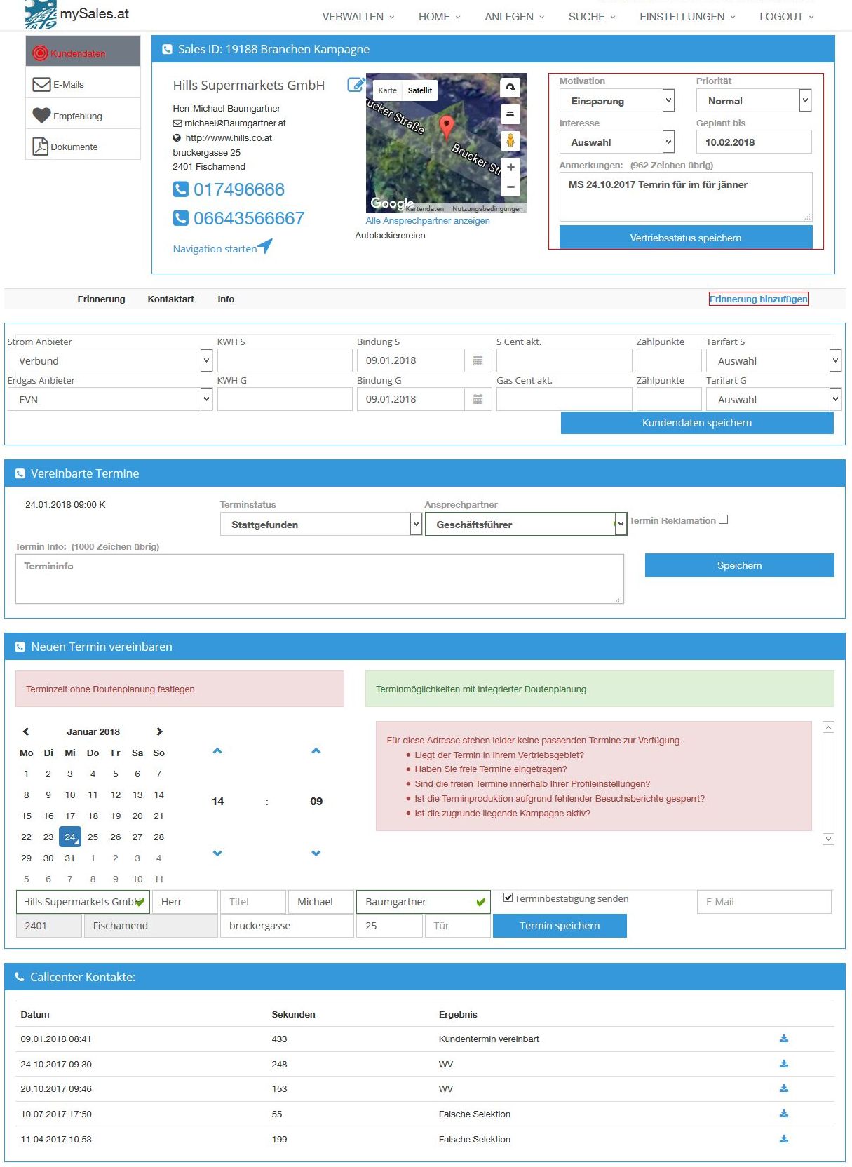 Steuern Sie interne und externe Verkaufsteams und Callcenter. Wir bieten eine gemeinsame Plattform für alle am Vertriebsprozess beteiligten Abteilungen basierend auf unterschiedlichen Zugriffsberechtigungen. Verwalten Sie Ihre Vertriebspartner und deren Vertriebsgebiete. Gewinnen Sie mehr Kunden aus Ihrer Adressbasis. Wir erstellen individuelle Masken für Ihre Auftragseingaben und Schnittstellen zu vorhandenen Systemen. Mit MySales unterstützen Sie Ihre Verkaufsmannschaft und geben ihr ein mächtiges Werkzeug, um mehr Kunden zu gewinnen. Sie erhalten MySales als White Label Lösung mit eigener Domäne und eigenem Logo.