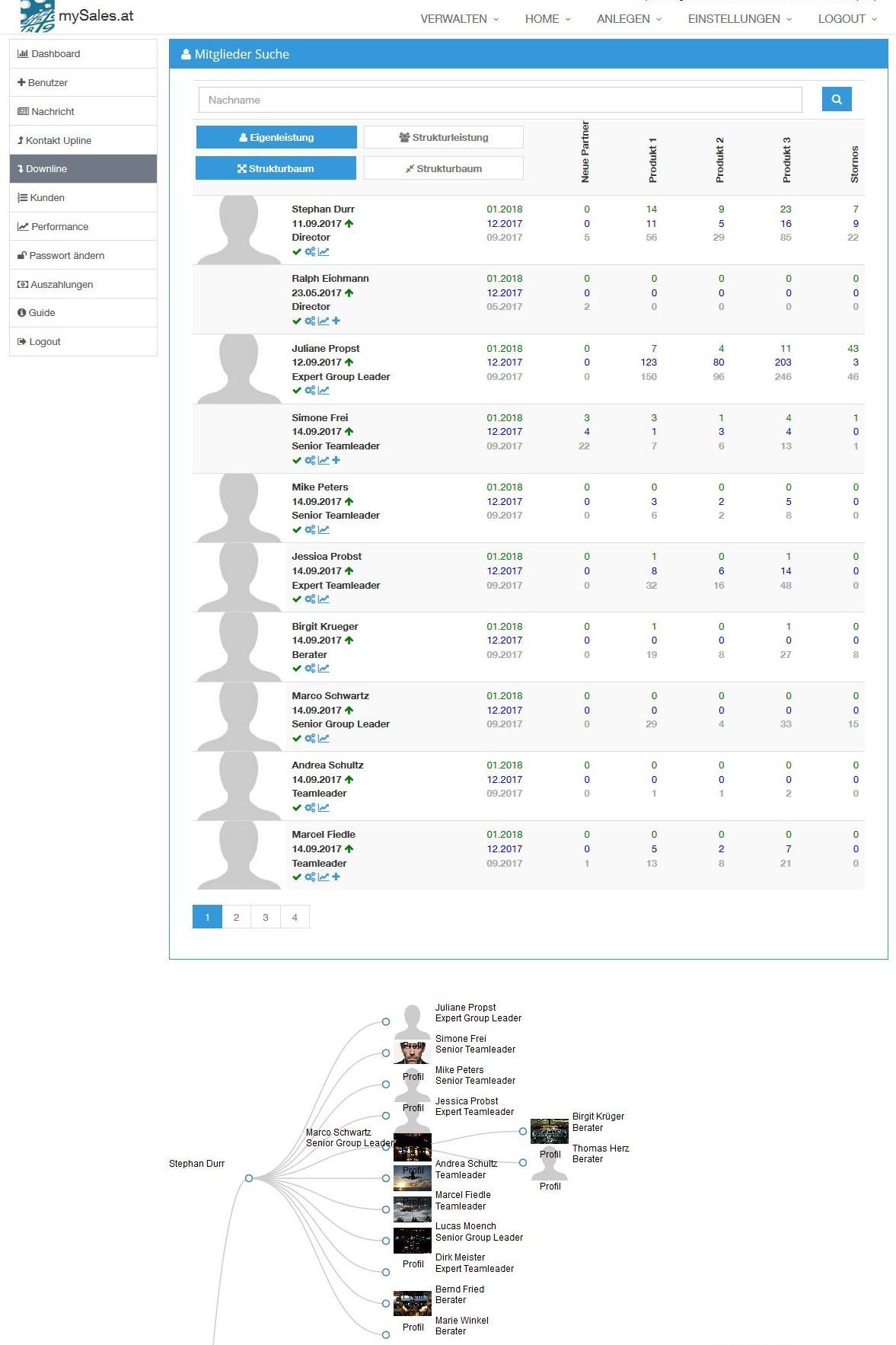 Aufgrund der großen Anzahl von Mitarbeitern in Strukturvertrieben ist es wichtig, eine möglichst intuitive Benutzeroberfläche zur Verfügung zu stellen. Wir bilden Ihre Struktur ab und erstellen individuelle Auftragseingaben und Provisionsabrechnungen nach Ihren Angaben. Sie erhalten MySales als White Label Lösung mit eigener Domäne und eigenem Logo.